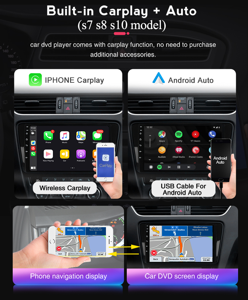 support apple wired car play+apple wireless car play+android auto