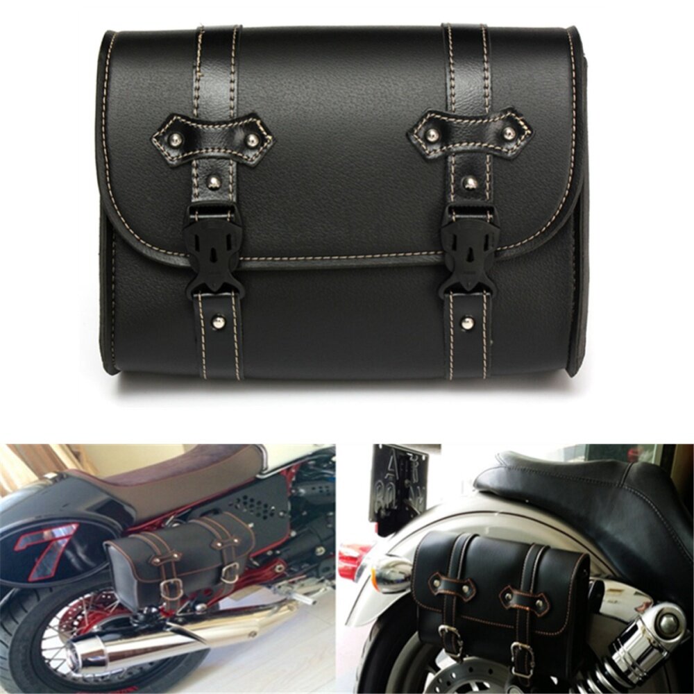 Motorcycle PU Leather Side Saddlebag Luggage Storage Tool Pouch Saddle Bag Black