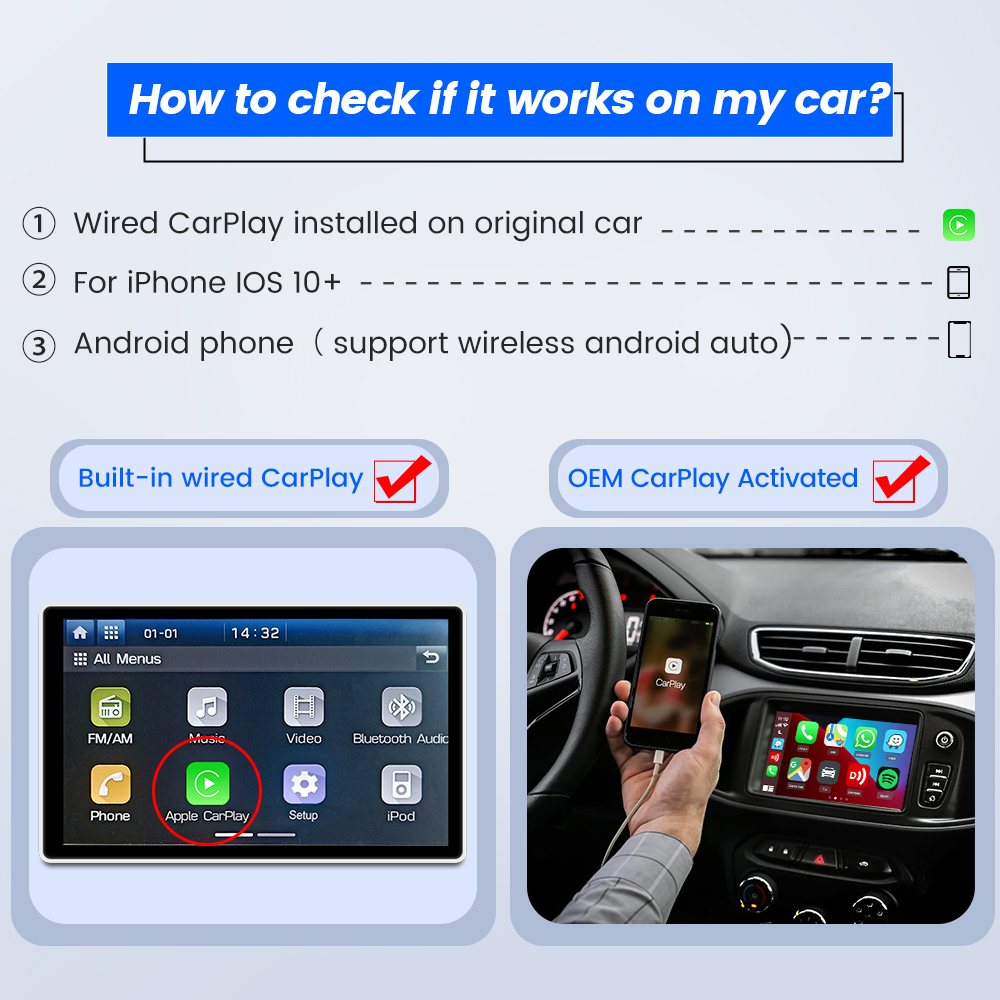It only works with the Car Player that has wired Apple CarPlay. So just make sure your car has wired Apple CarPlay.