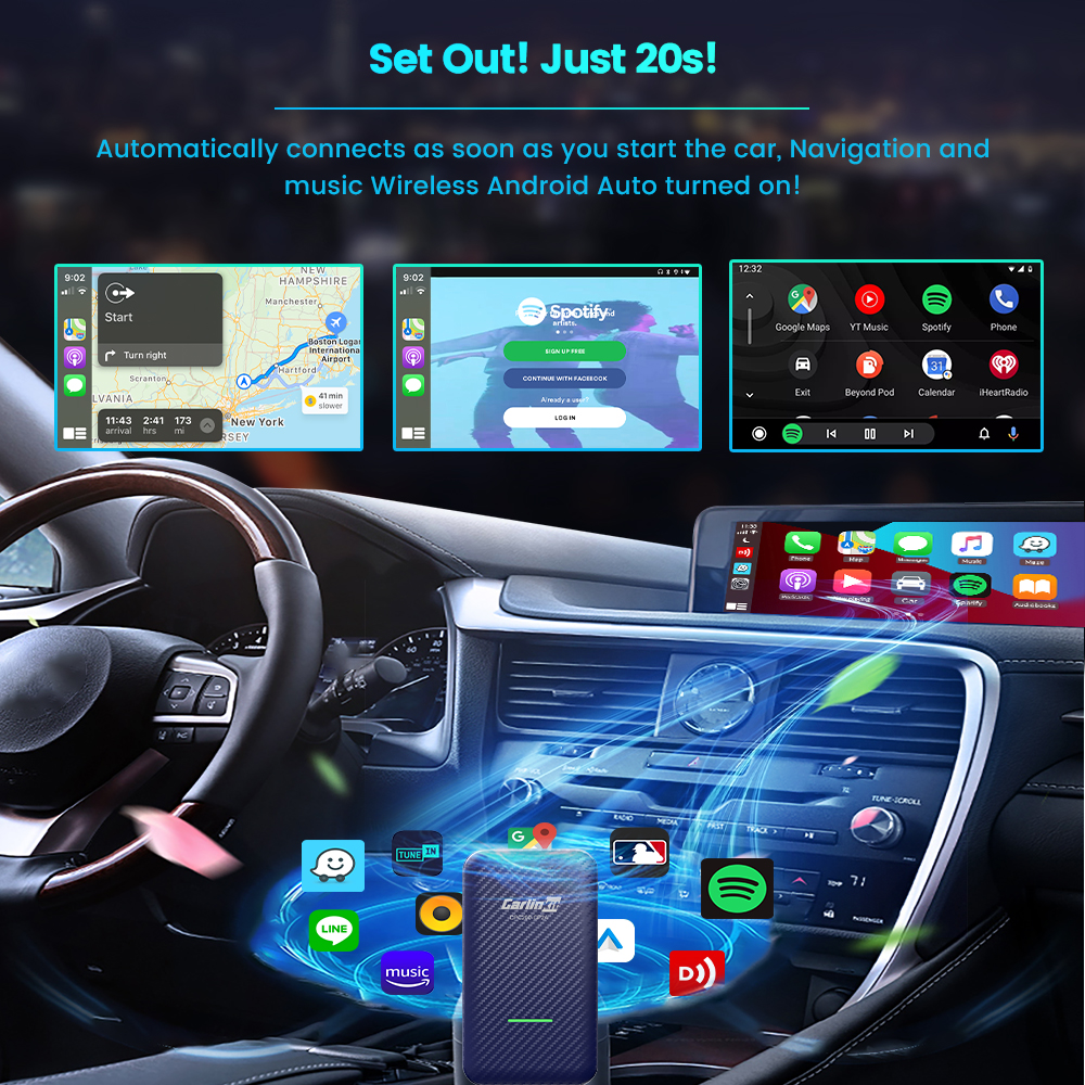 3. 20s Auto-Connect. After Car Player is started, the box will automatically connect to the phone via Bluetooth & WiFi.