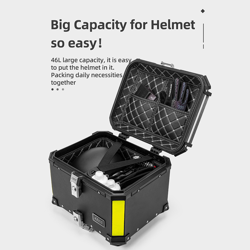 1. Big Capacity: 46L large capacity, it is easy to put the helmet in it with daily necessities