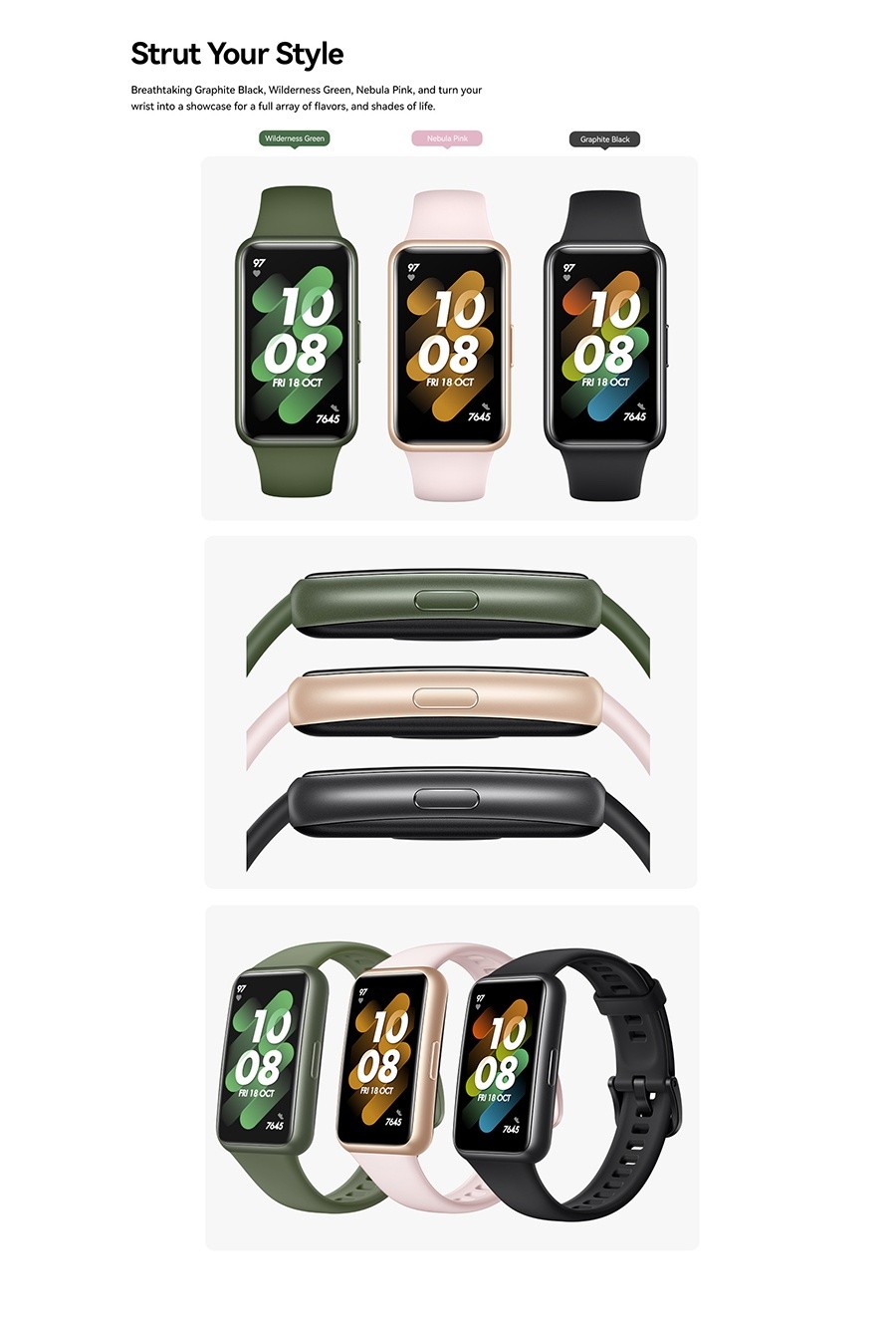 • 【Handy life assistant】: HUAWEI Band 7 keeps you plugged in to your life, View incoming calls and messages, quick reply of messages, get weather updates, control your music, plus take photos through your phone’s camera, all from the comfort of your own wrist.