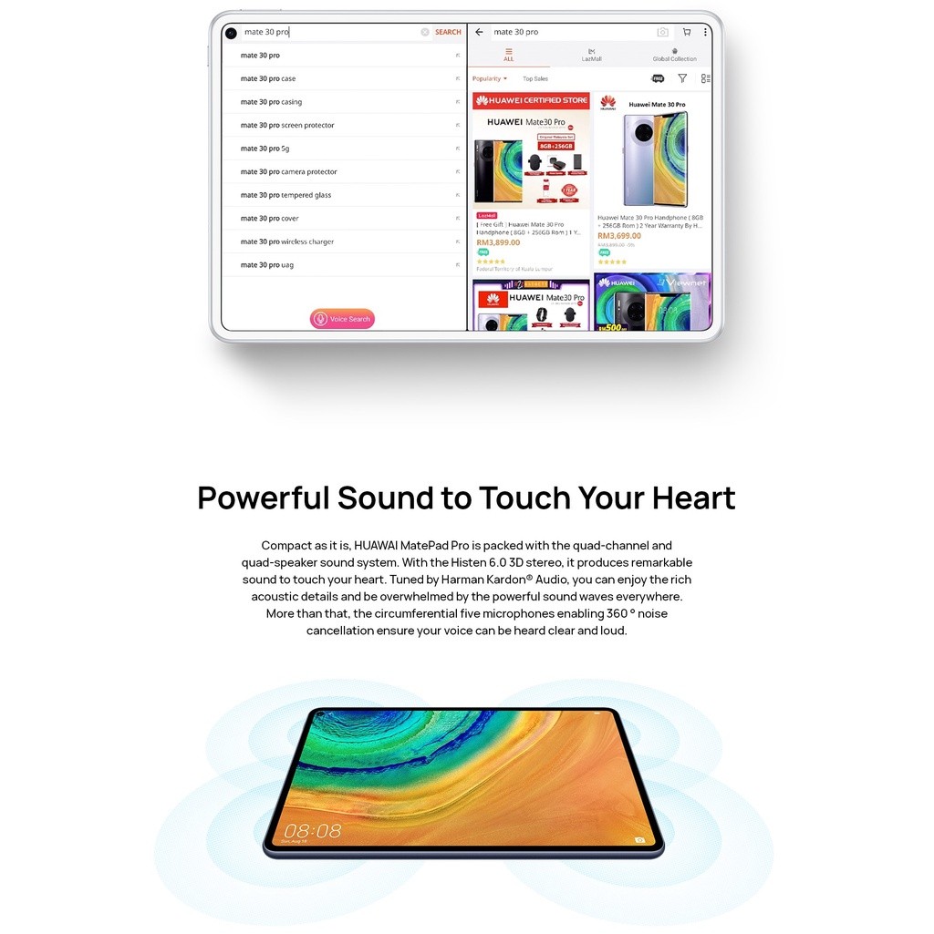 HUAWEI MatePad Pro is a 10.8-inch FullView Display tablet, which offers remarkable visual experiences, with the 90% screen-to-body ratio and bezels stripped back to 4.9 mm. It comes with the SnapdragonTM 870 7nm chipset, HUAWEI Share Multi-screen Collaboration, the multi-window feature, Histen 7.0 Audio, 40W HUAWEI SuperCharge, 7250 mAh battery and Wi-Fi 6. Also, HUAWEI MatePad Pro 10.8-inch can be more powerful when used with HUAWEI M-Pencil (2nd generation)** and HUAWEI Smart Magnetic Keyboard (Compatible with HUAWEI MatePad Pro 10.8-inch).