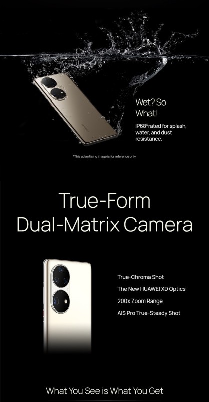 HUAWEI P50 Pro delivers superior performance and push the boundary of smartphone photography. True-Form Dual-Matrix Camera enables you to capture what you see with original colours and elevated clarity. The upgraded portrait mode and new AI features help you create stories with great fun. The supreme iconic design “Legend Reborn”apply on the Dual-Matrix Camera. Intelligent Cross-Device Collaboration, Smart Folder provides the all-new interactive experience, Fitting the large screen and battery into a compact body, HUAWEI P50 Pro is lighter than the previous generation and a better fit in your hand which contains 66W wired and 50W wireless super charge with the 4360mAh battery.