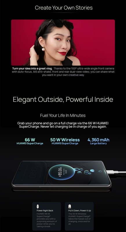 Charging: HUAWEI SuperCharge (Max66W) | Wireless HUAWEI SuperCharge (Max50W)
